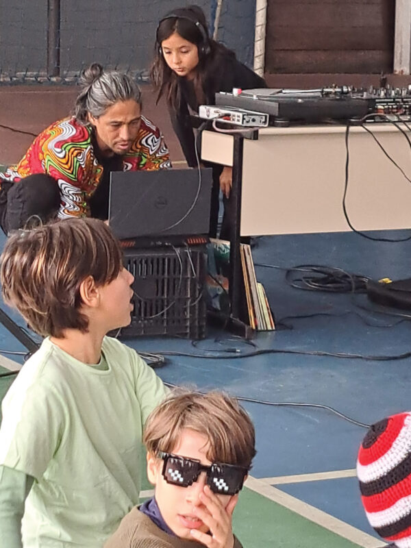 Uma novidade se introduziu desta vez: uma vitrola com pai e filho discotecando vinis e embalando o público.